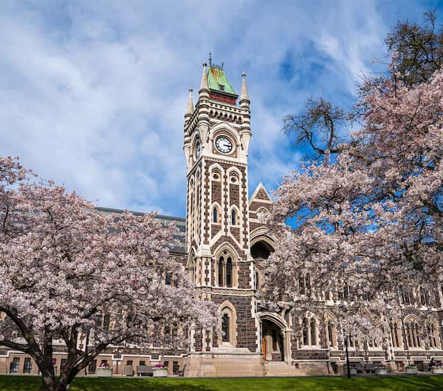 "The University of Otago, located in Dunedin, New Zealand, is one of the country's most prestigious universities, renowned for its vibrant student life and strong emphasis on research. Established in 1869, it is New Zealand's oldest university and consistently ranks among the top 1% of universities worldwide. The campus is known for its iconic clock tower building and scenic riverside setting, creating a picturesque environment for learning.